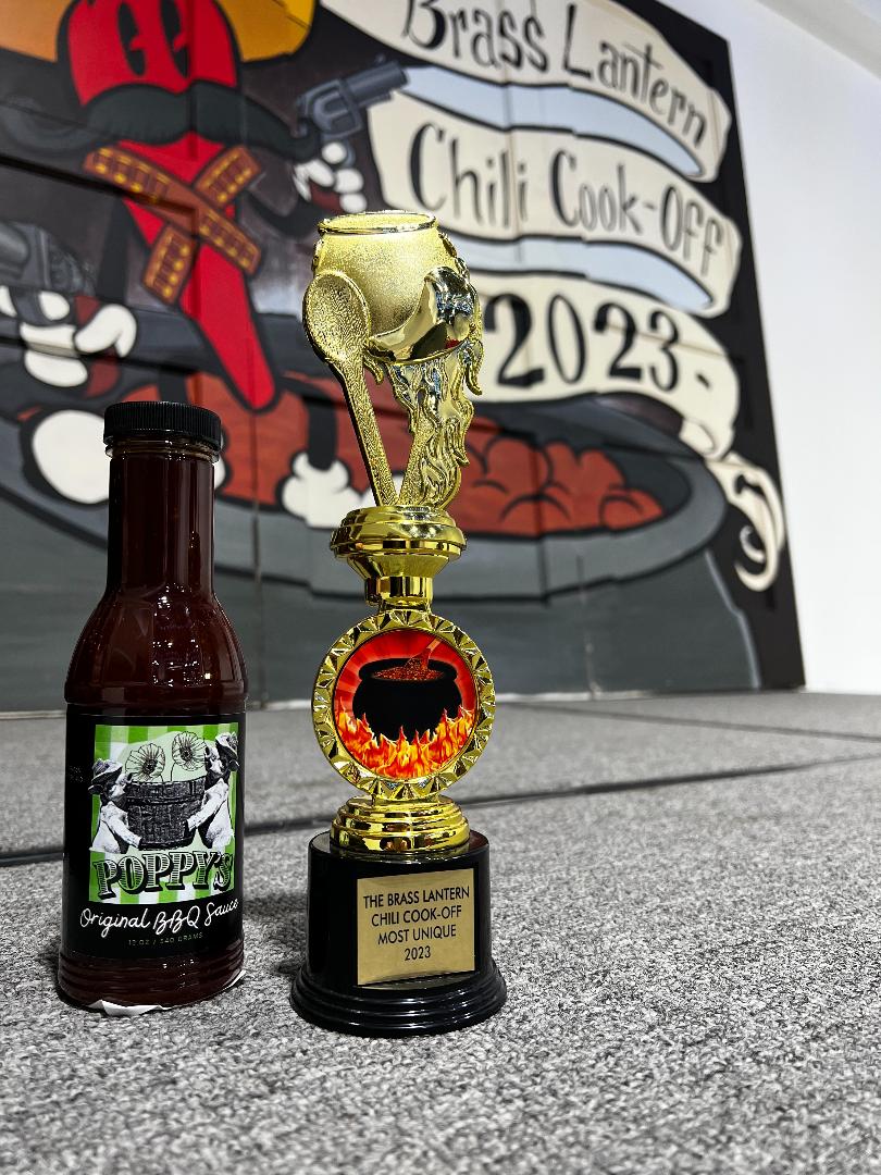 Poppy's BBQ Sauce was added to a chili recipe and we won 1st Place at The Brass Lantern Chili Cook-Off. Purchase a bottle today to take your recipes to the next level!